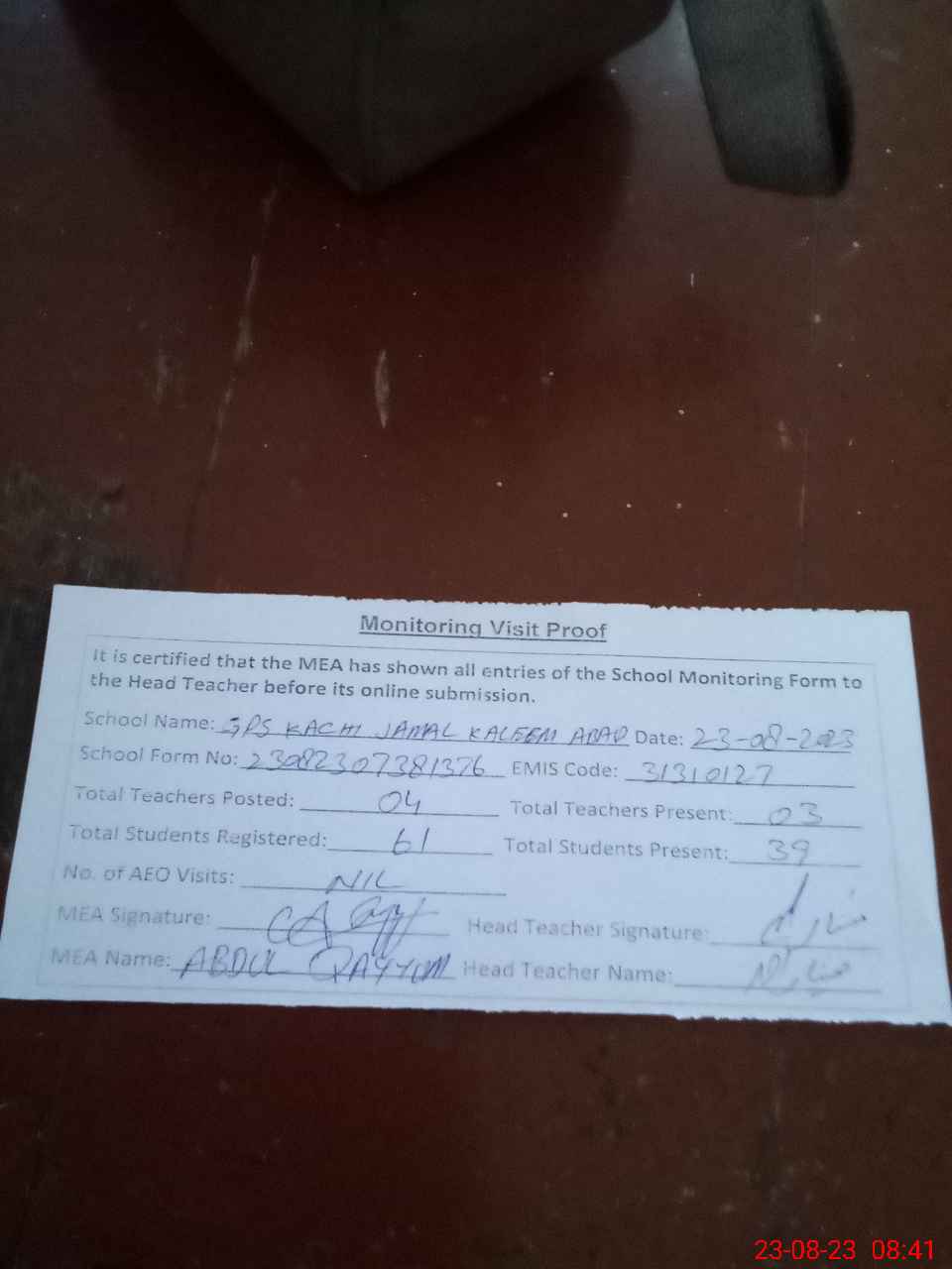 | EMIS Code: 31310127 | Name of School: GPS KACHI JAMAL KALIM ABAD (After Noon) | |||