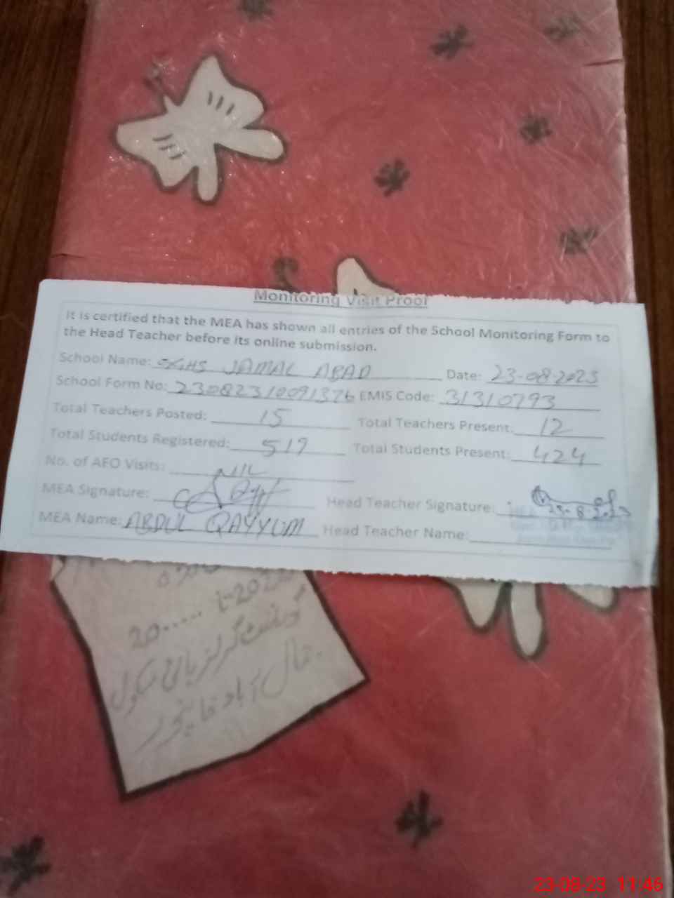 | EMIS Code: 31310793 | Name of School: GGHS JAMAL ABAD | |||