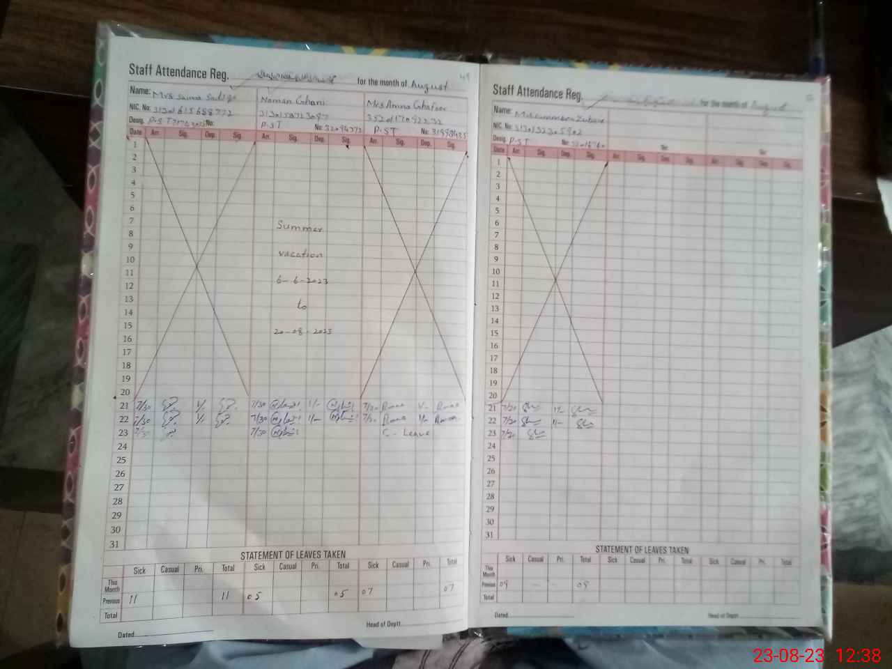 | CNIC | Full Name | Designation | R/C | Absence During Last Calender Month |