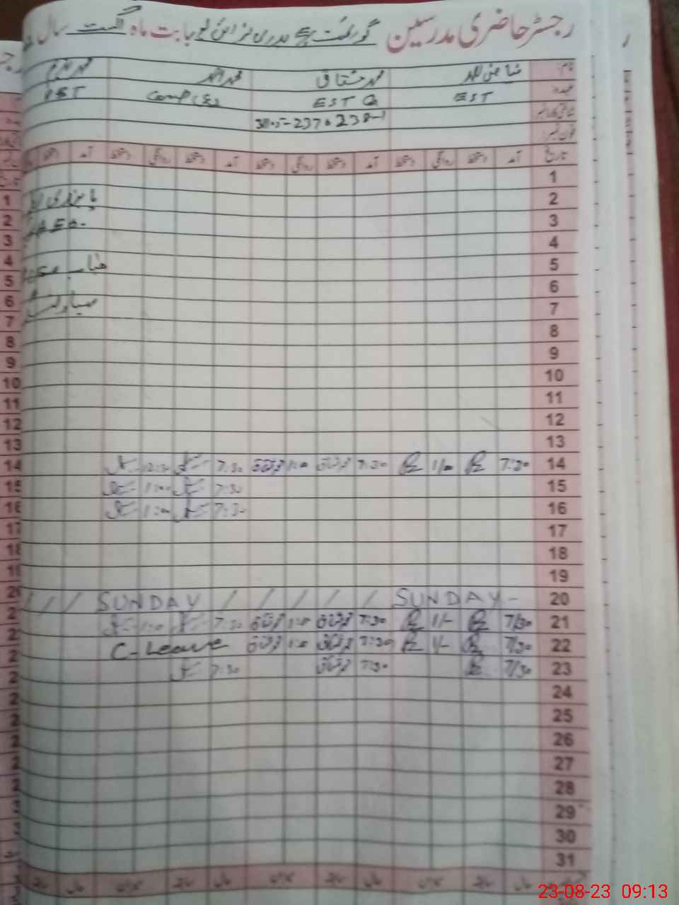 | 31**** | Ta**** Ja**** | PST | Regular | 0 | 0 | 0 | 0 | 0 | 0 | 0 | 0 | 0 | Casual |