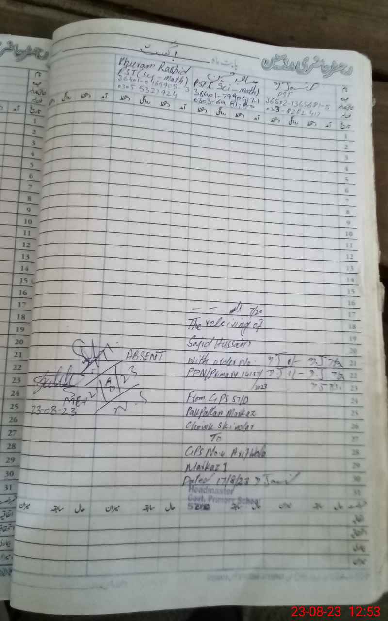 | Name: Sa**** Designation: (School Headmaster's/Headmistress's) PST Phone/Cell Number: 03**** |