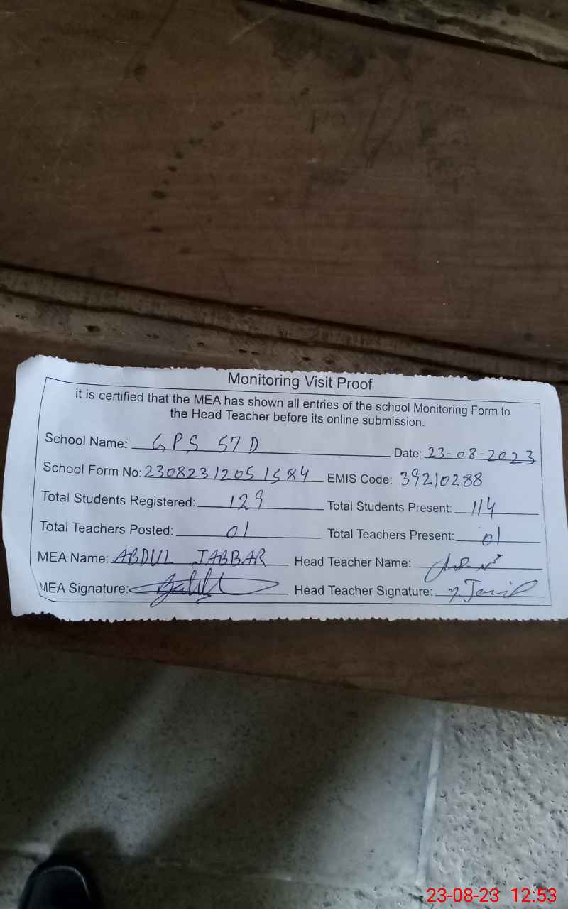 | EMIS Code: 39210288 | Name of School: GPS 57/D | |||
