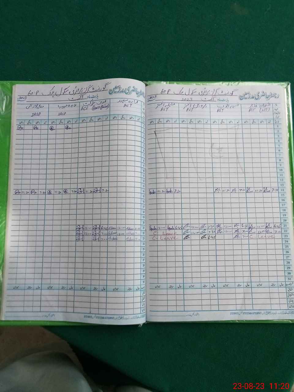 | CNIC | Full Name | Designation | R/C | Absence During Last Calender Month |