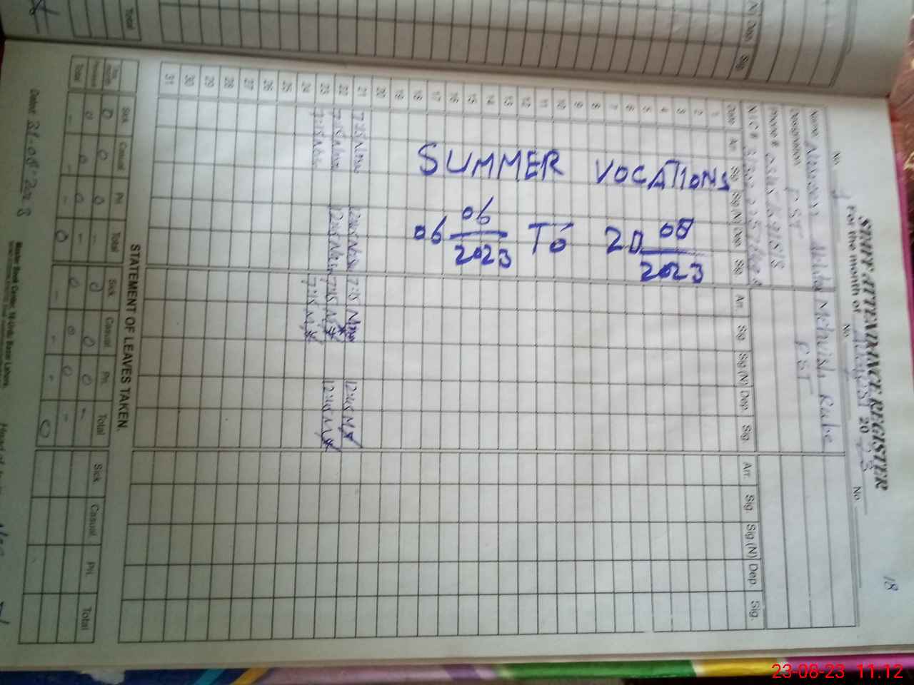 | Monitoring Date: 23-08-2023 | Start Time: 23-08-2023 10:51 AM | End Time: 23-08-2023 11:16 AM | Name of MEA: Za**** Iq**** | |