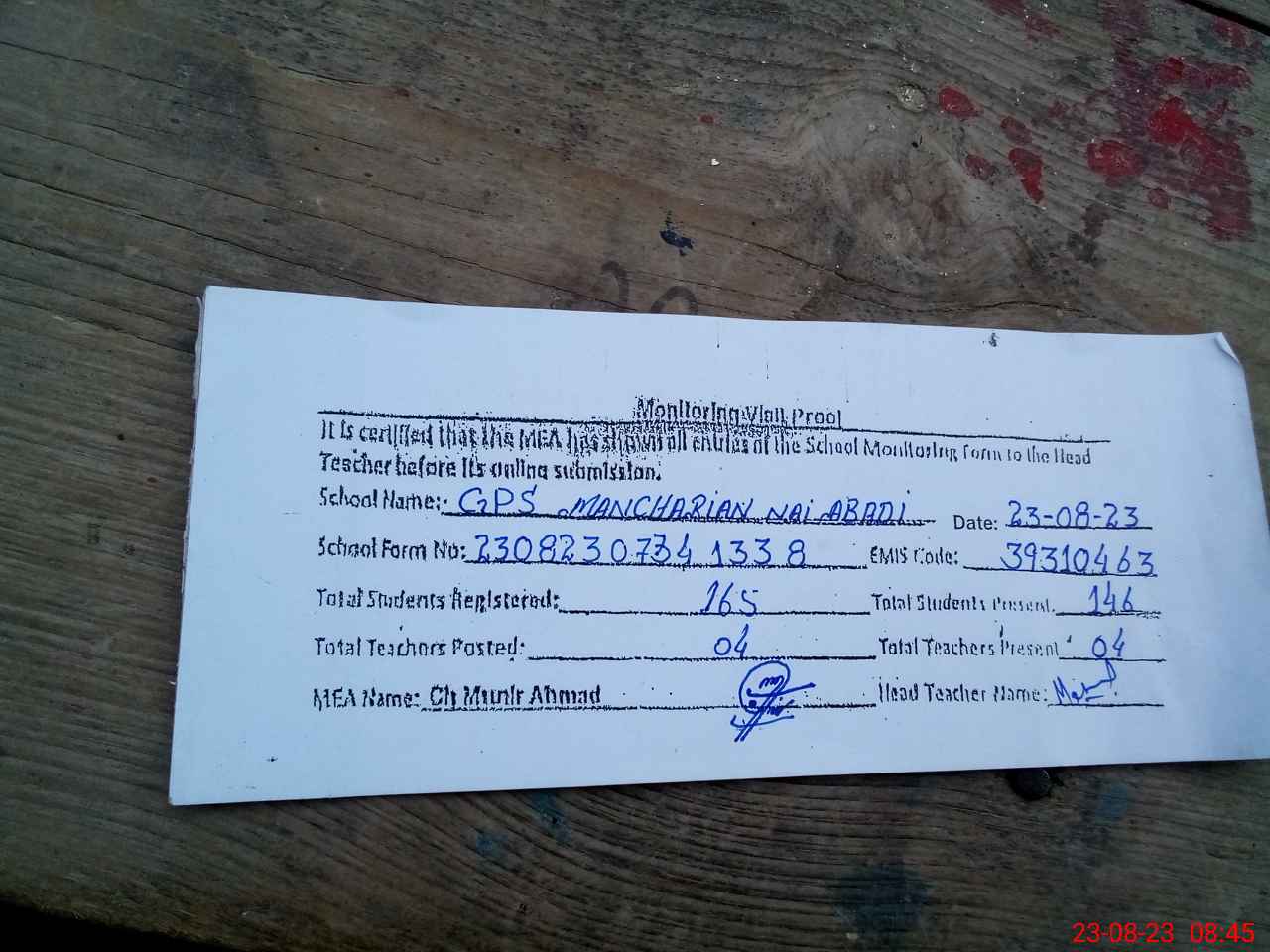 | EMIS Code: 39310463 | Name of School: GPS NAI ABADI MANCHRIAN | |||