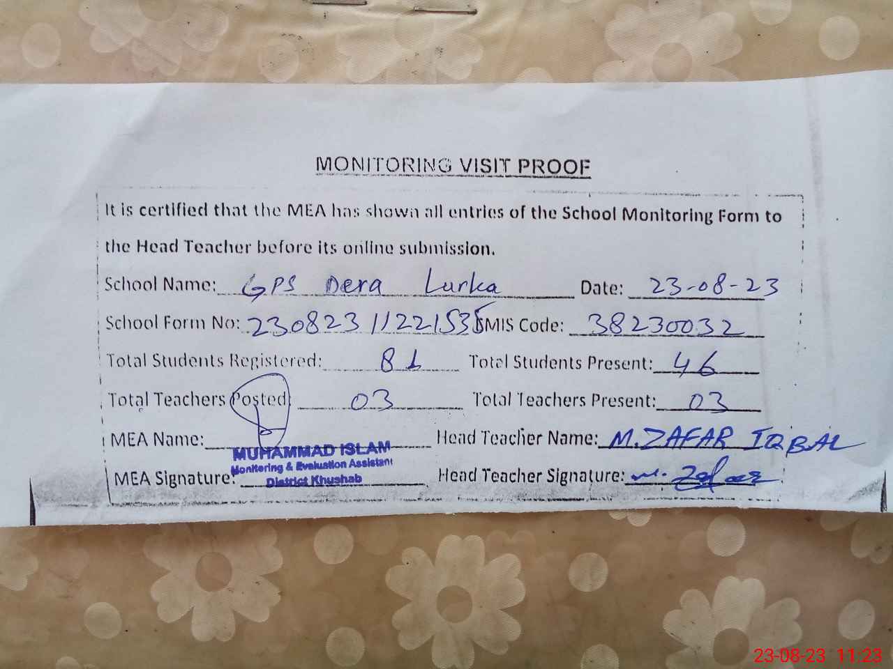 | EMIS Code: 38230032 | Name of School: GPS DERA LURKA | |||