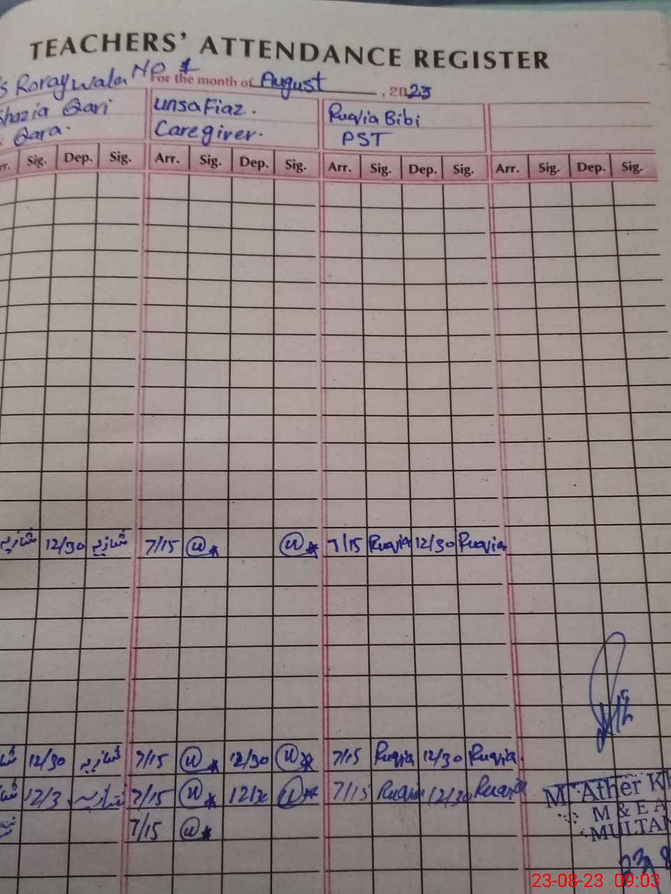 | Monitoring Date: 23-08-2023 | Start Time: 23-08-2023 08:56 AM | End Time: 23-08-2023 09:29 AM | Name of MEA: MU**** AT**** KH**** | |