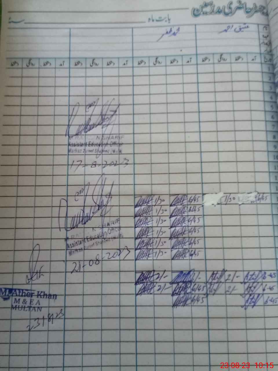 | Monitoring Date: 23-08-2023 | Start Time: 23-08-2023 10:09 AM | End Time: 23-08-2023 10:54 AM | Name of MEA: MU**** AT**** KH**** | |