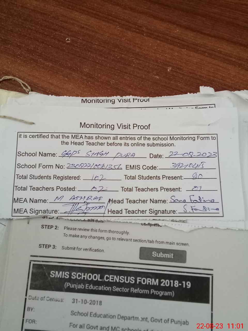 | Attendance Register | Head Teacher | MEA with School | Visit Proof |