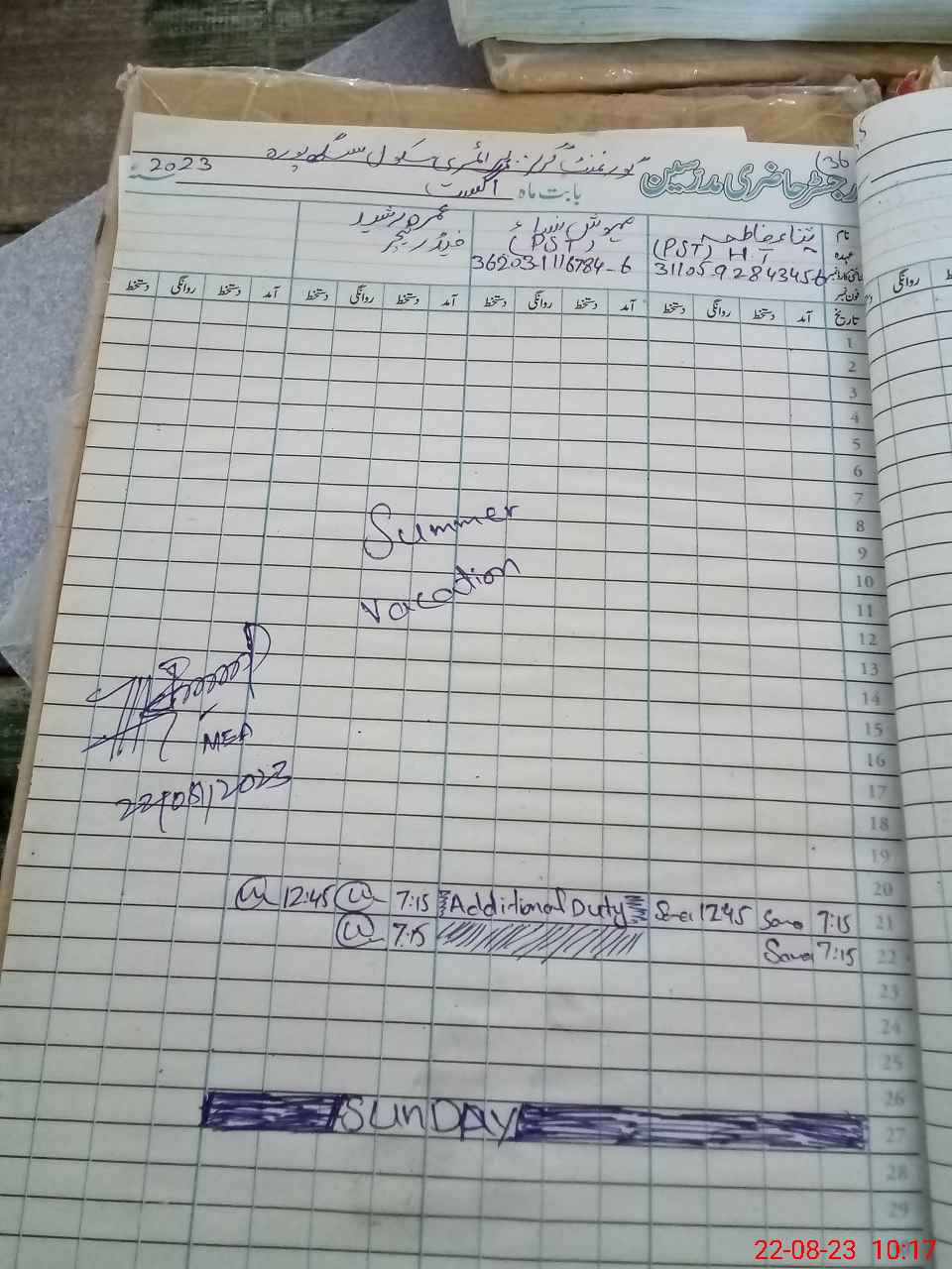 | Name: Sa**** Fa**** Designation: (School Headmaster's/Headmistress's) PST Phone/Cell Number: 03**** |