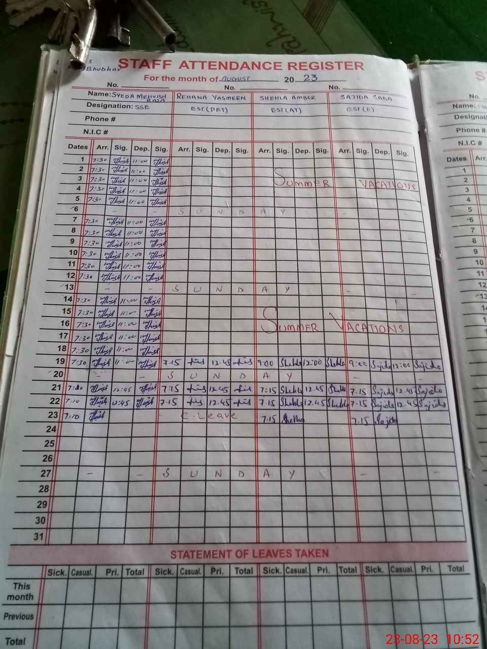 | 36**** | Re**** Ya**** | Regular | 0 | 0 | 0 | 0 | 0 | 0 | 0 | 0 | 0 | Casual | |