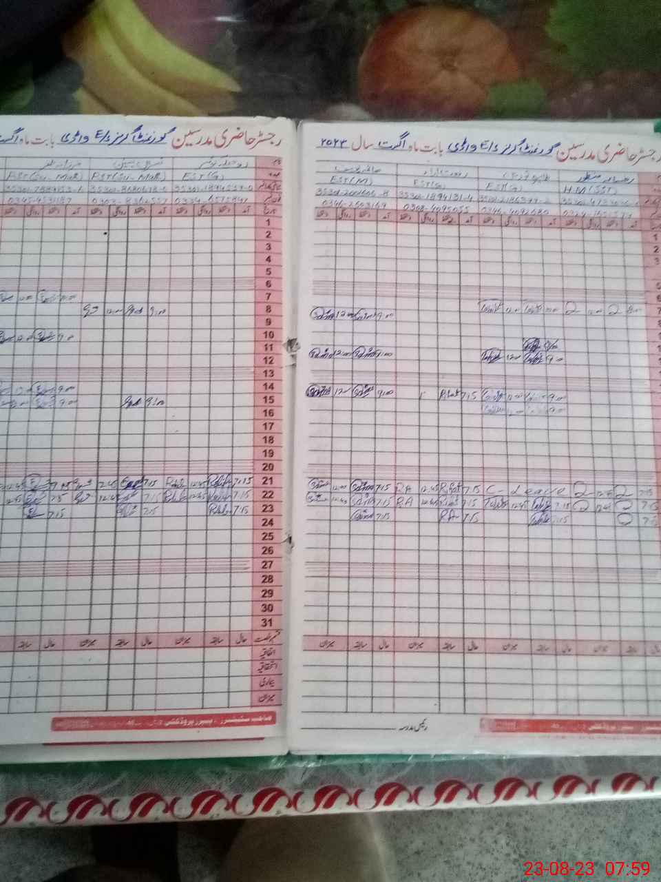 | CNIC | Full Name | Designation | R/C | Absence During Last Calender Month |