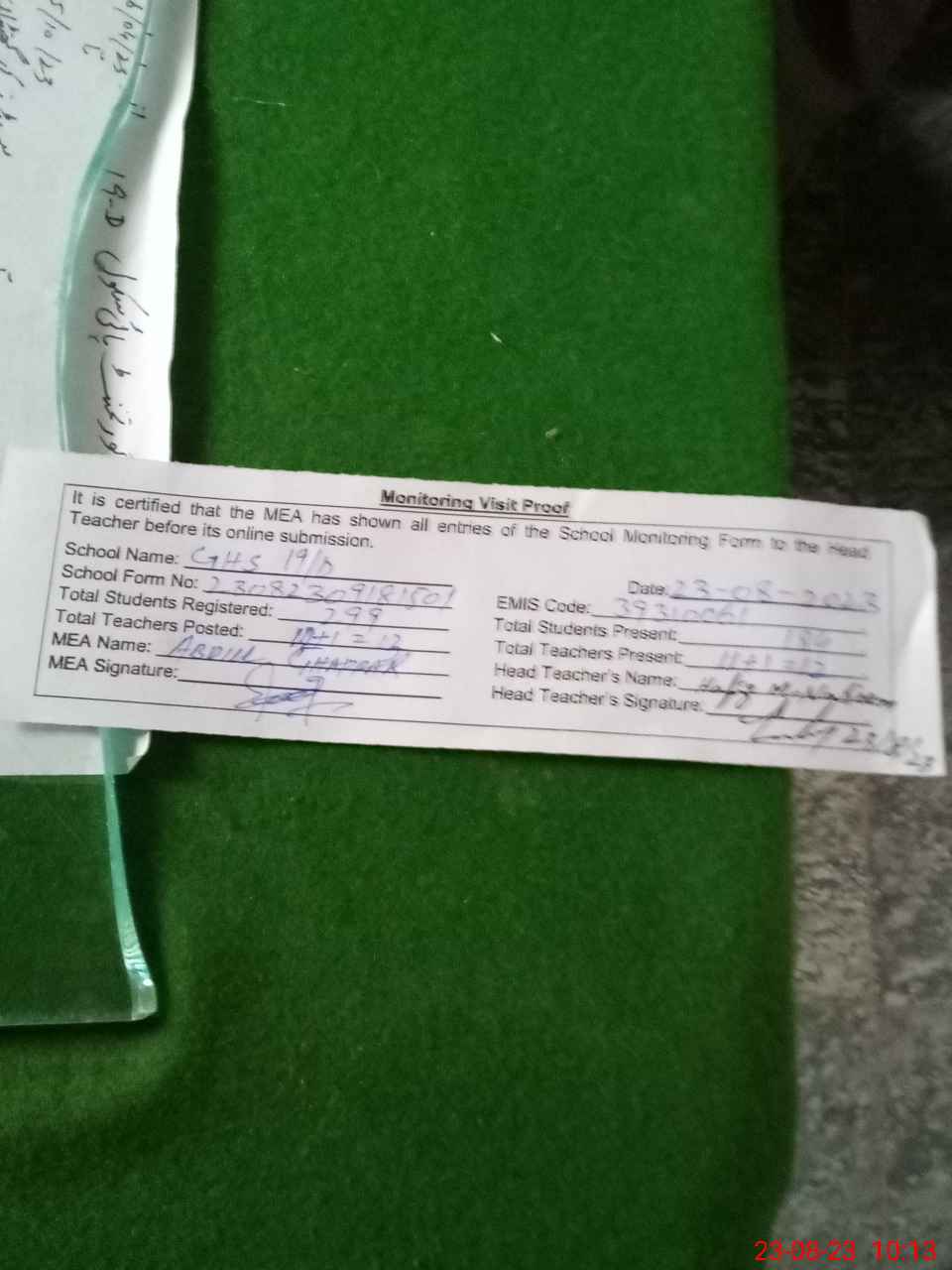 | Remarks (Use Separate Page if Required): 01Teacher Named Shoukat Ali EST posted in on 17 aug 2023 His name is not included in pmiu soft ware | |||||
