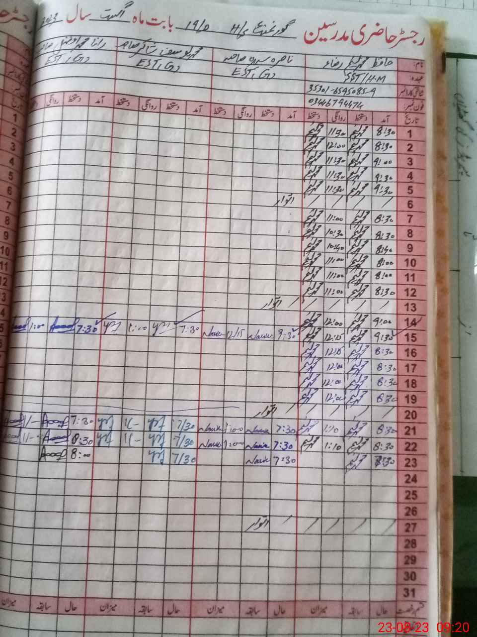 | Name: NA**** ASY**** Designation: (School Headmaster's/Headmistress's) EST I/C Phone/Cell Number: 03**** |