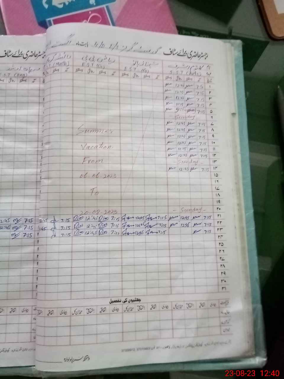 | Remarks (Use Separate Page if Required): 01 Teacher newly posted in named Abiaha Manzoor Total teachers 09 present | |||||