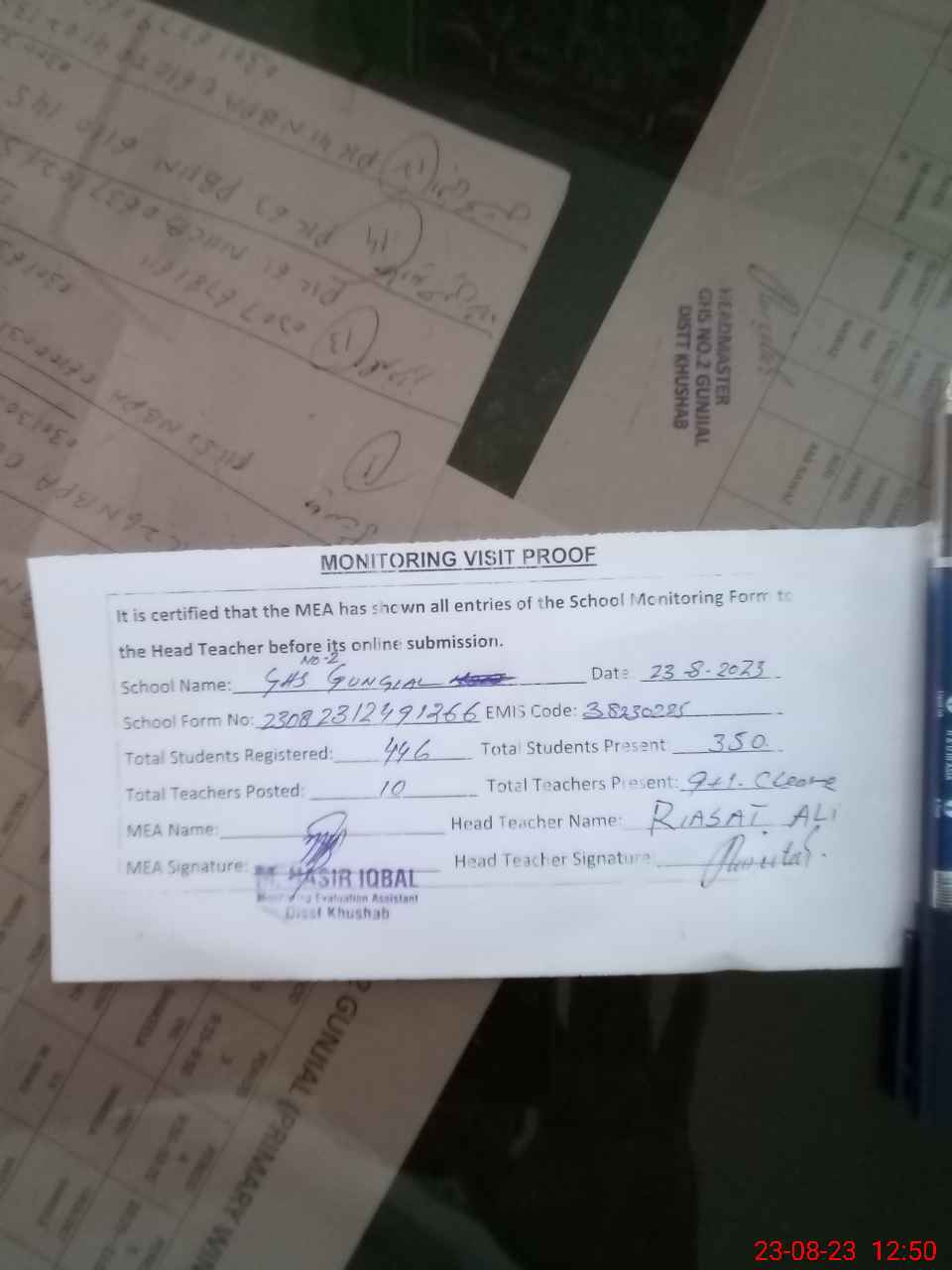 | EMIS Code: 38230225 | Name of School: GHS NO. 2 GUNJIAL | |||
