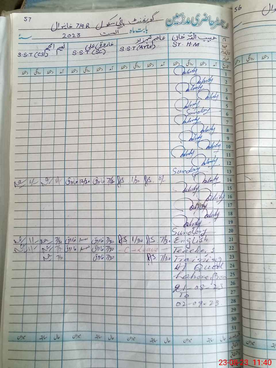 | 36**** | Ha**** Kh**** | Sr. Headmaster | Regular | 0 | 0 | 0 | 0 | 0 | 0 | 0 | 0 | 0 | On Training |