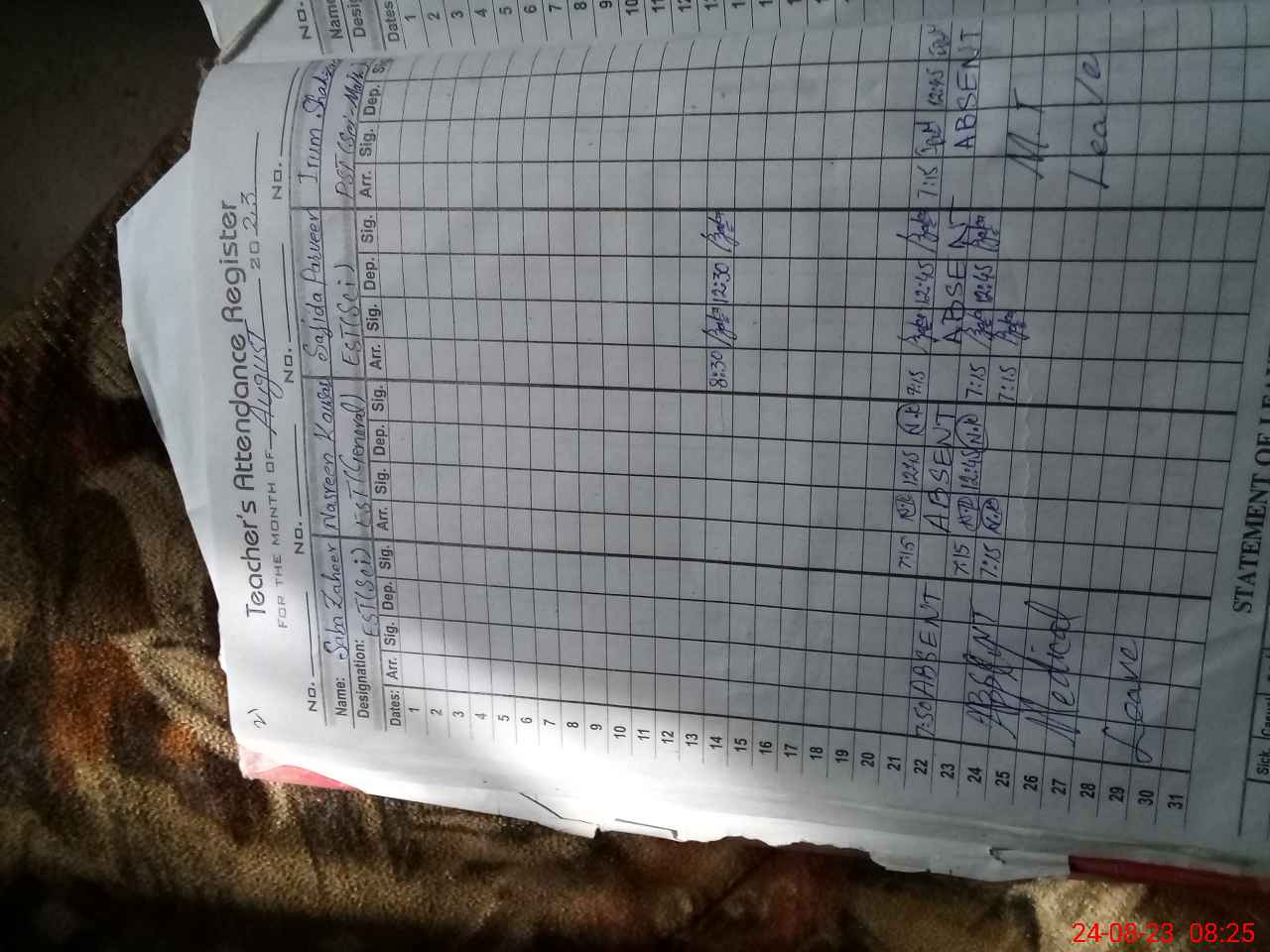 | Name: Sa**** Pa**** Designation: (School Headmaster's/Headmistress's) EST SCI Phone/Cell Number: 03**** |
