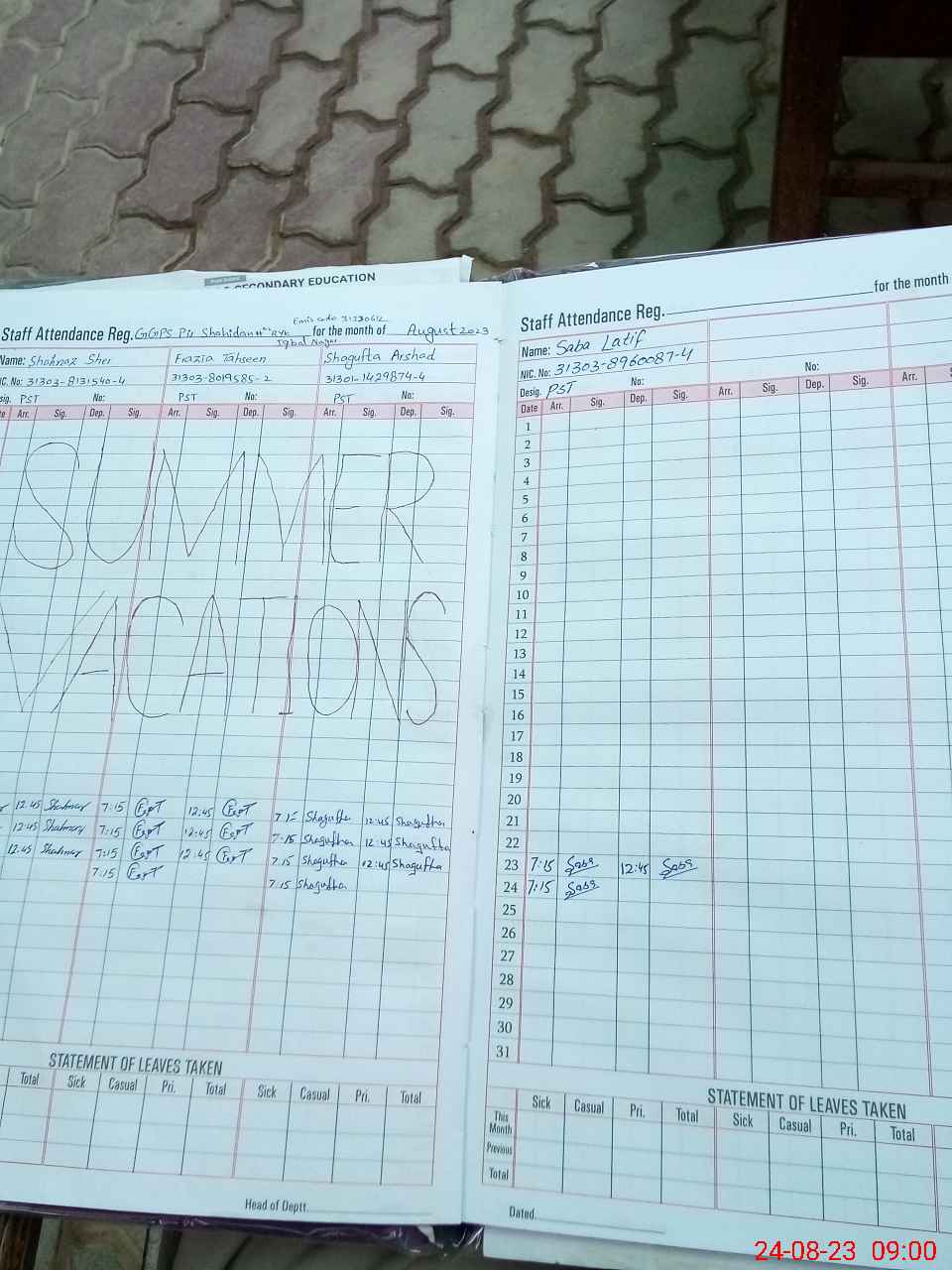| Name: Sh**** Sa**** Designation: (School Headmaster's/Headmistress's) EST(General) Phone/Cell Number: 03**** |