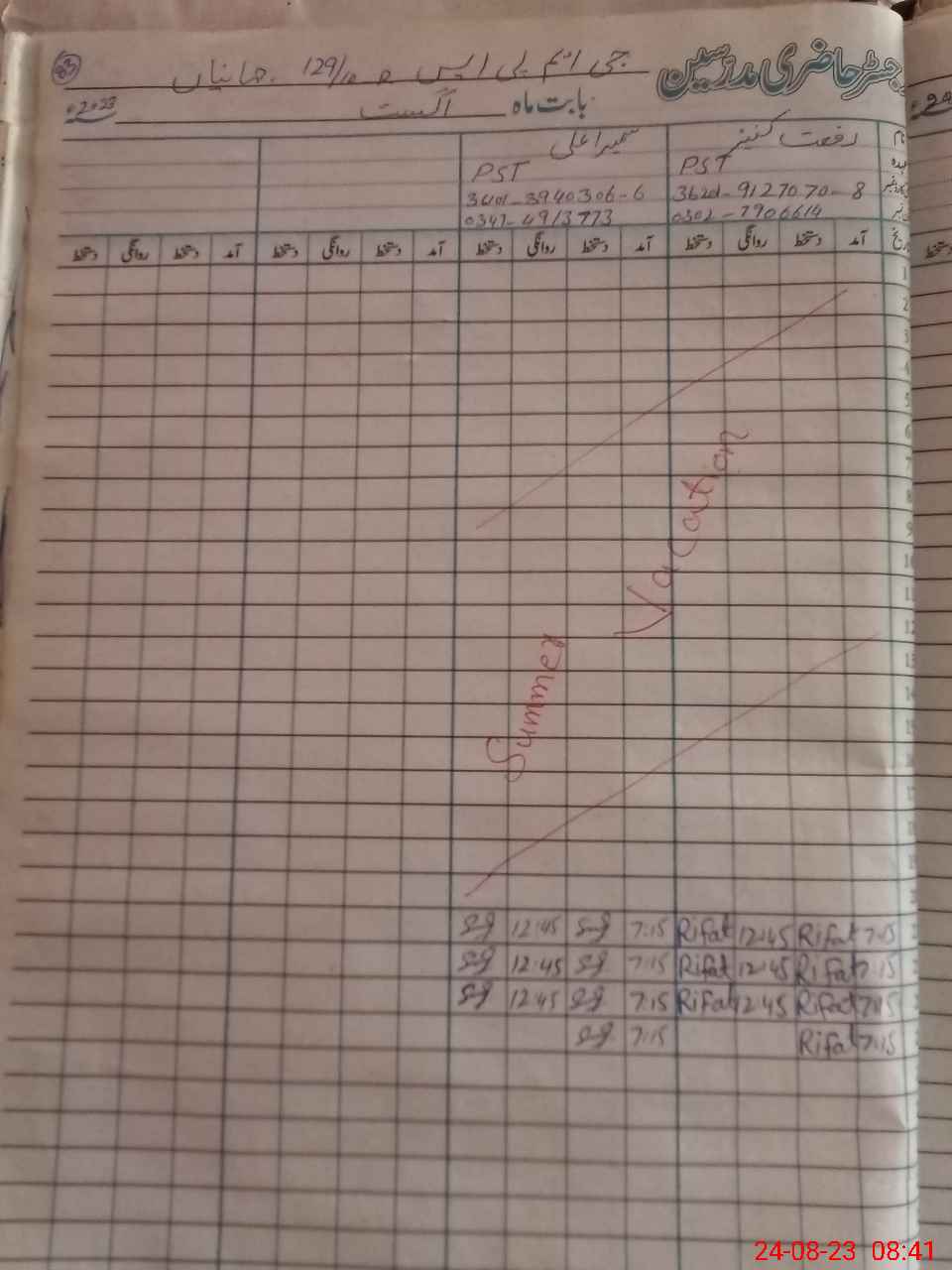| CNIC | Full Name | Designation | R/C | Absence During Last Calender Month |