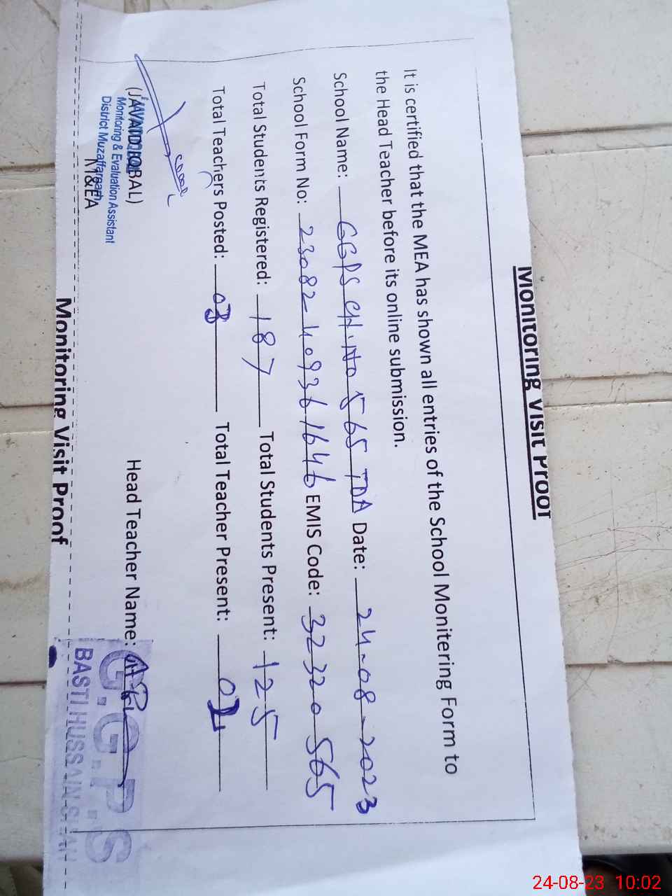 | EMIS Code: 32320565 | Name of School: GGPS BASTI HUSSAIN SHAH | |||