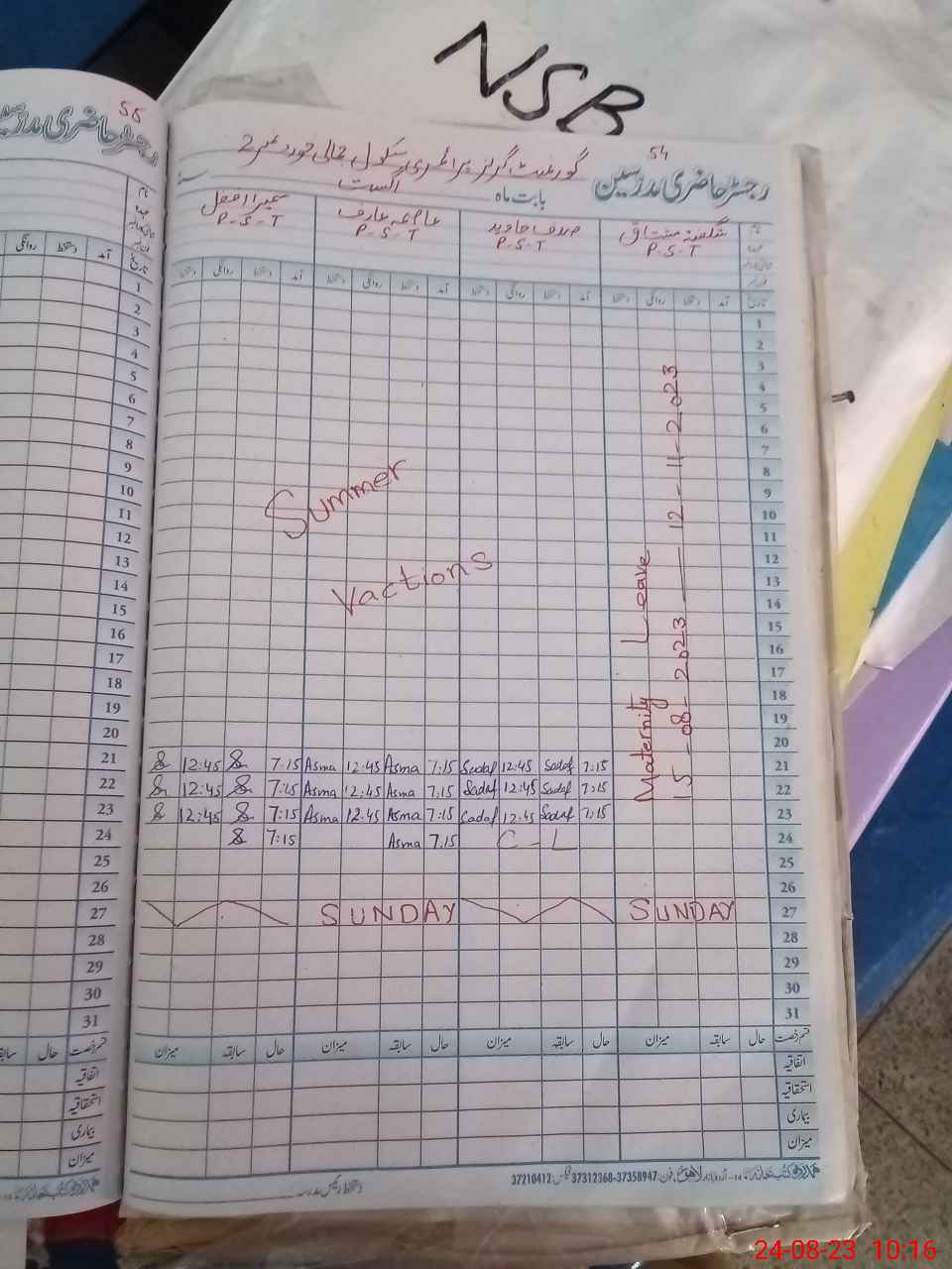 | Leave | Duty | Absent | Maternity | Medical | Ex- Pak |