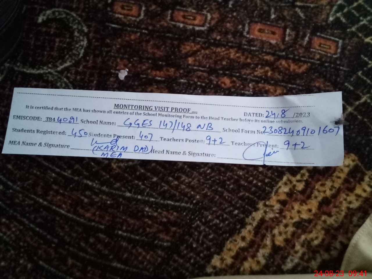 | EMIS Code: 38440091 | Name of School: GGES CHAK NO.147/148 NB | |||