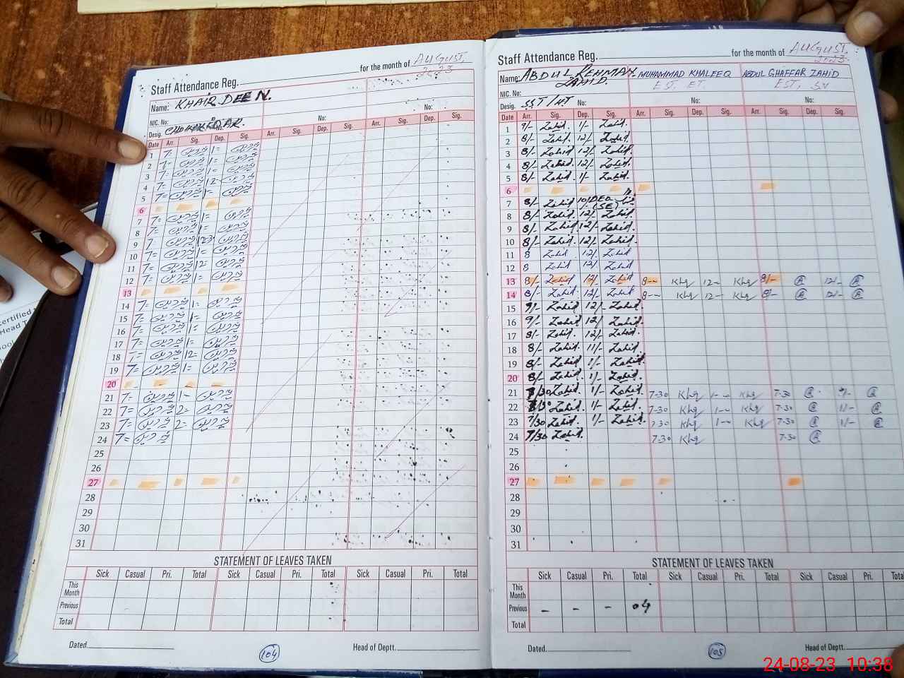 | CNIC | Full Name | Designation | R/C | Absence During Last Calender Month |
