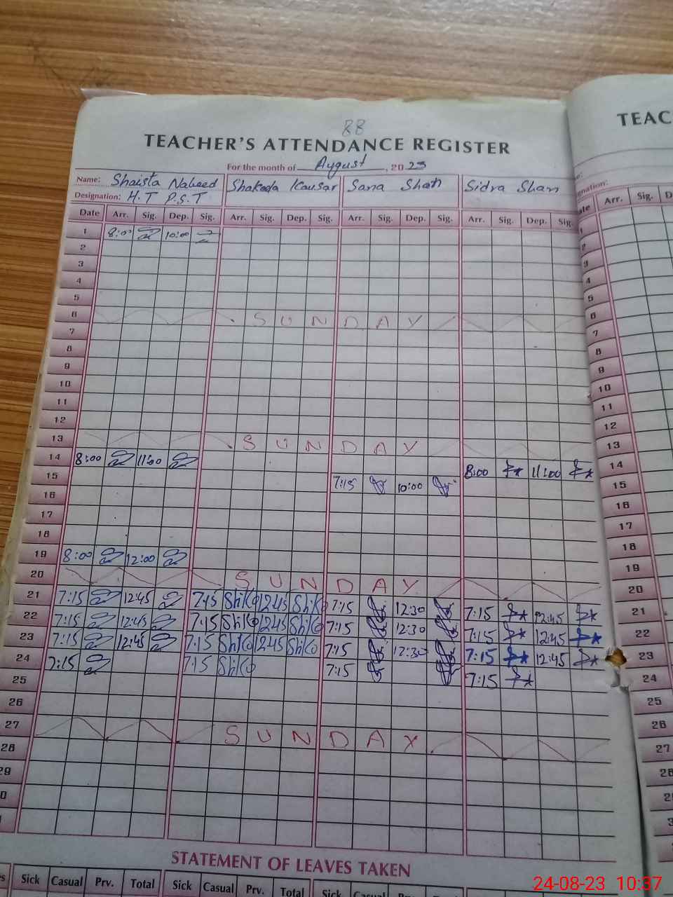 | Leave | Duty | Absent | Maternity | Medical | Ex- Pak |