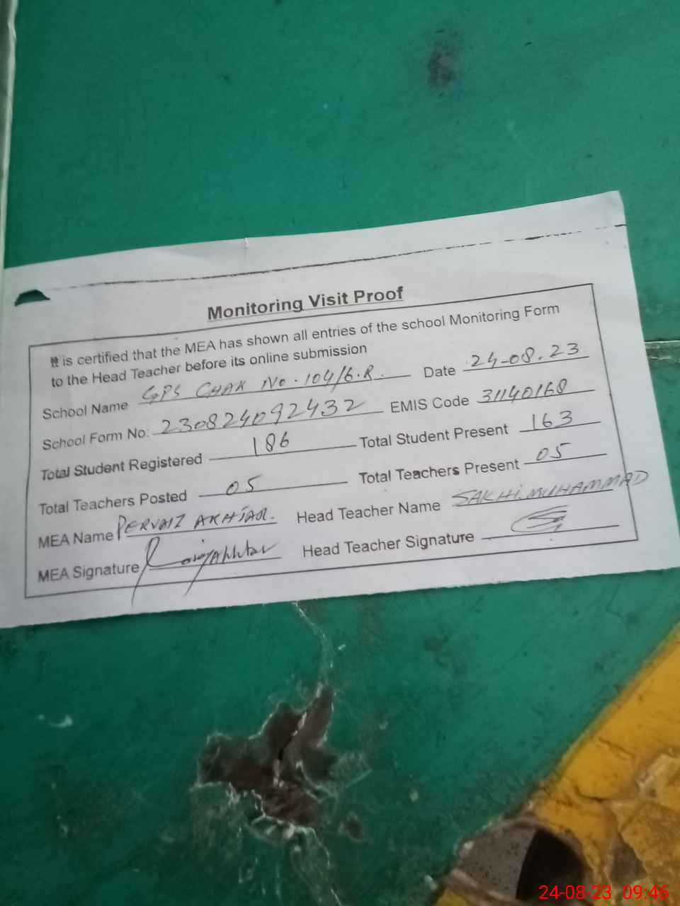 | EMIS Code: 31140168 | Name of School: GPS CHAK NO 104/6-R | |||
