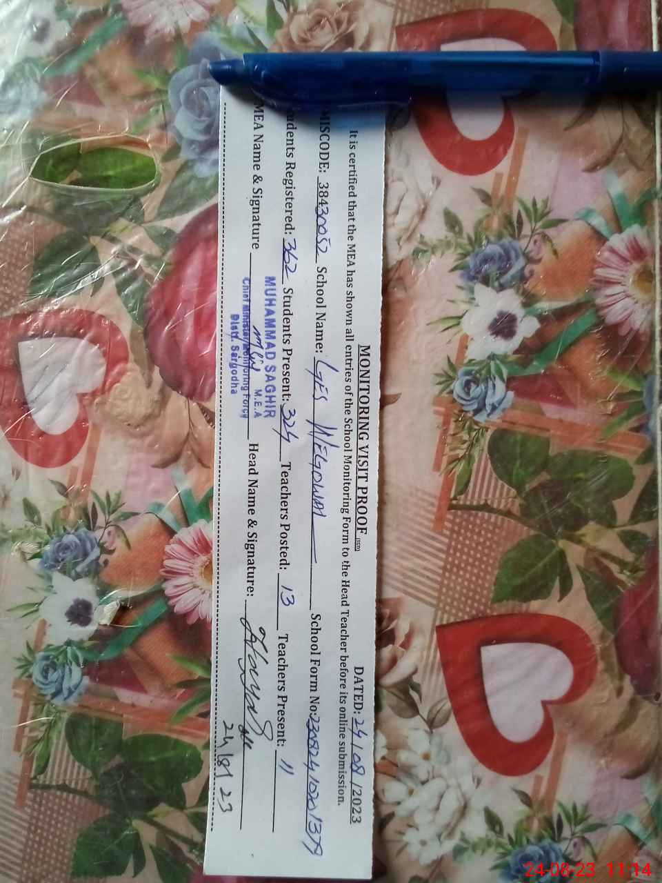 | Certified that this School was Inspected by the Undersigned MEA/DMO Today and the Information Stated Above is as Per Record. | |||||