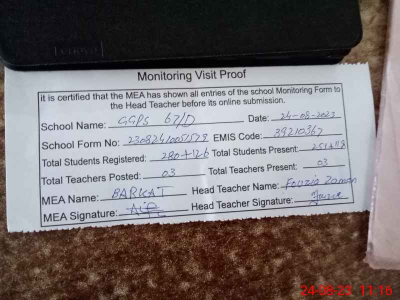 | EMIS Code: 39210367 | Name of School: GGPS 67 D | |||