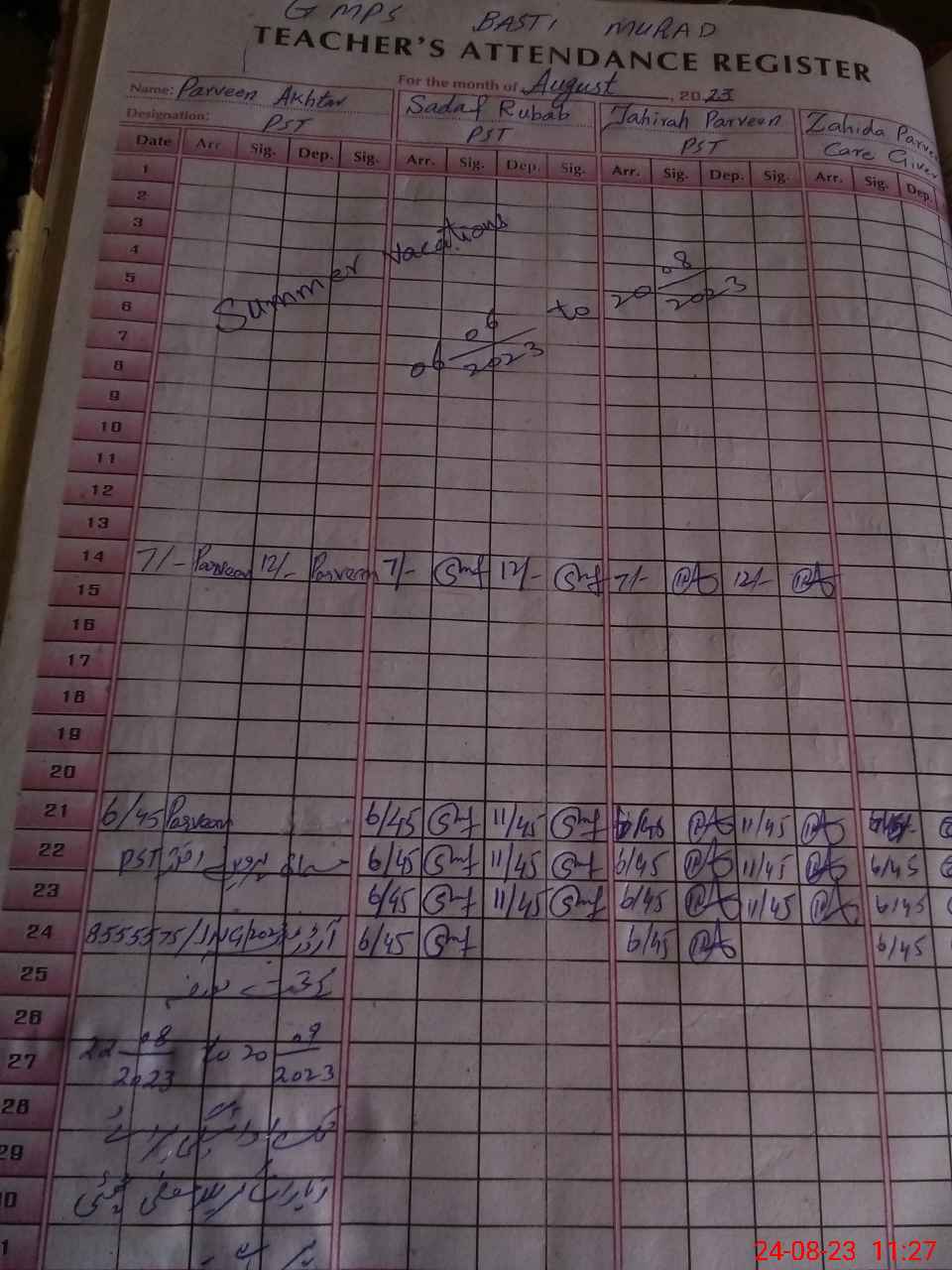 | 33**** | La**** Sa**** | 0 | 0 | 0 | 0 | 0 | 0 | 0 | 0 | 0 | Absent (Un-Authorized) | ||