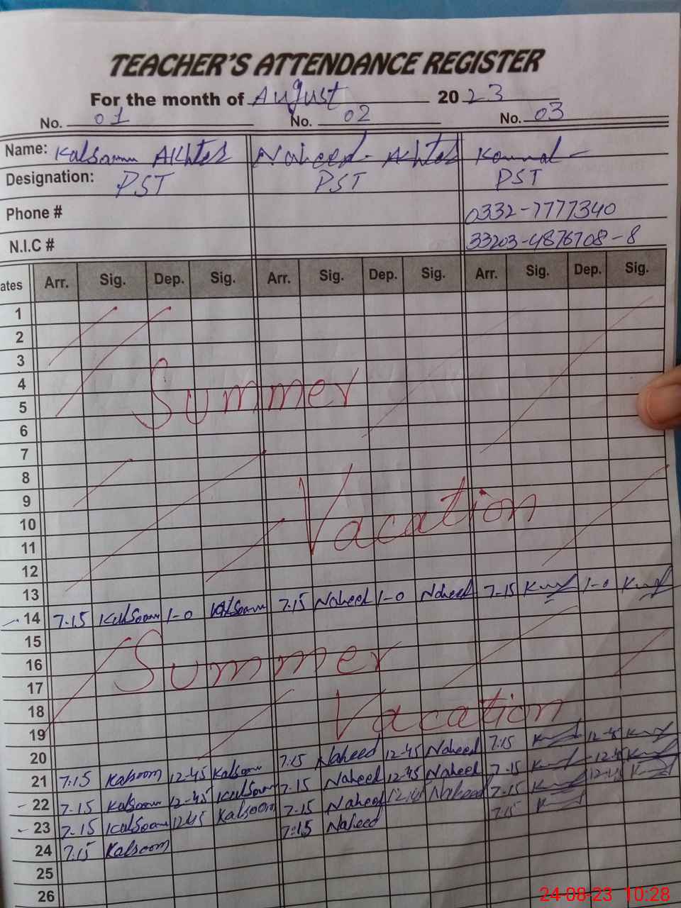 | Name: KA**** AK**** Designation: (School Headmaster's/Headmistress's) PST Phone/Cell Number: 03**** |