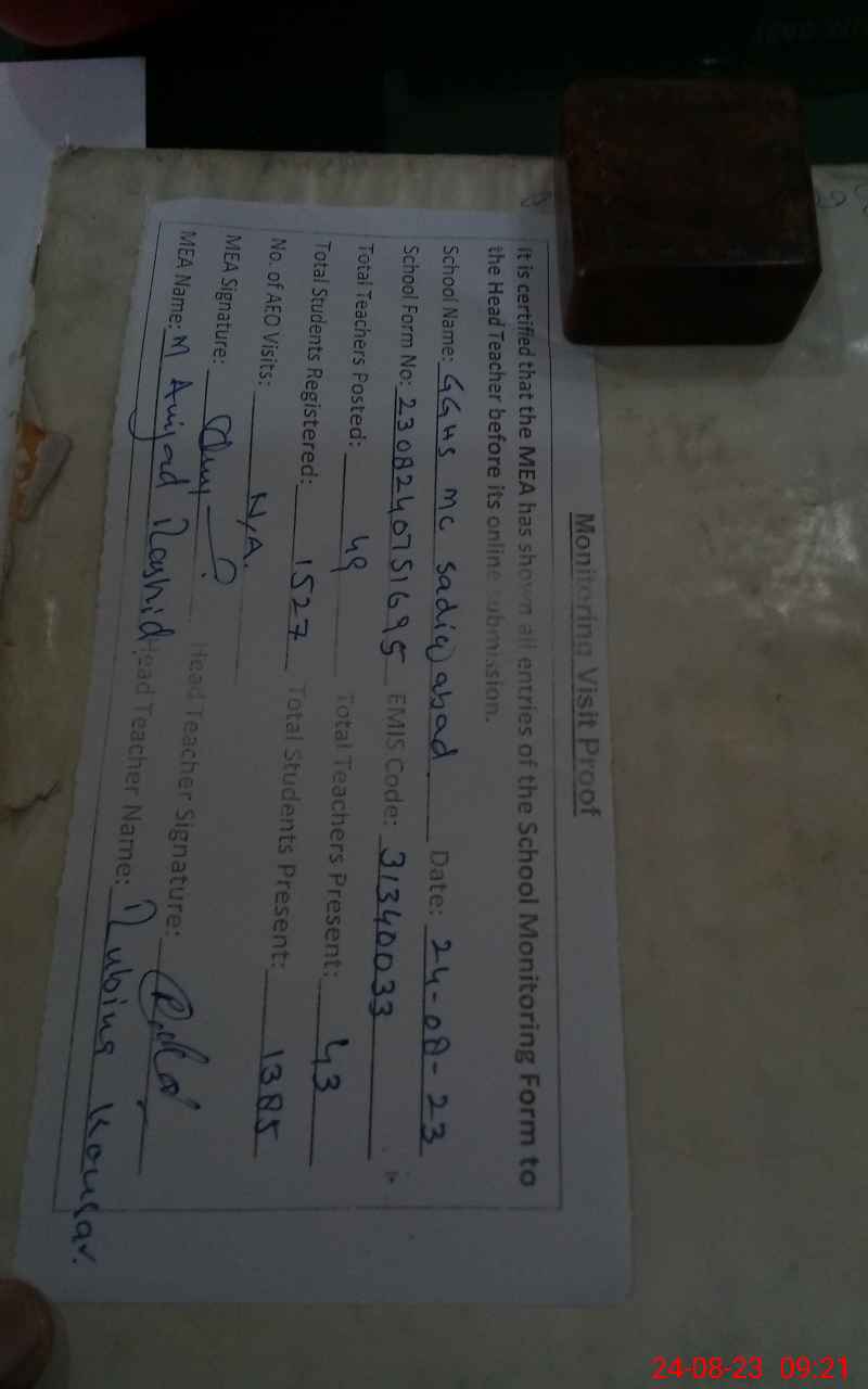 | EMIS Code: 31340033 | Name of School: GGHS MC SADIQ ABAD | |||