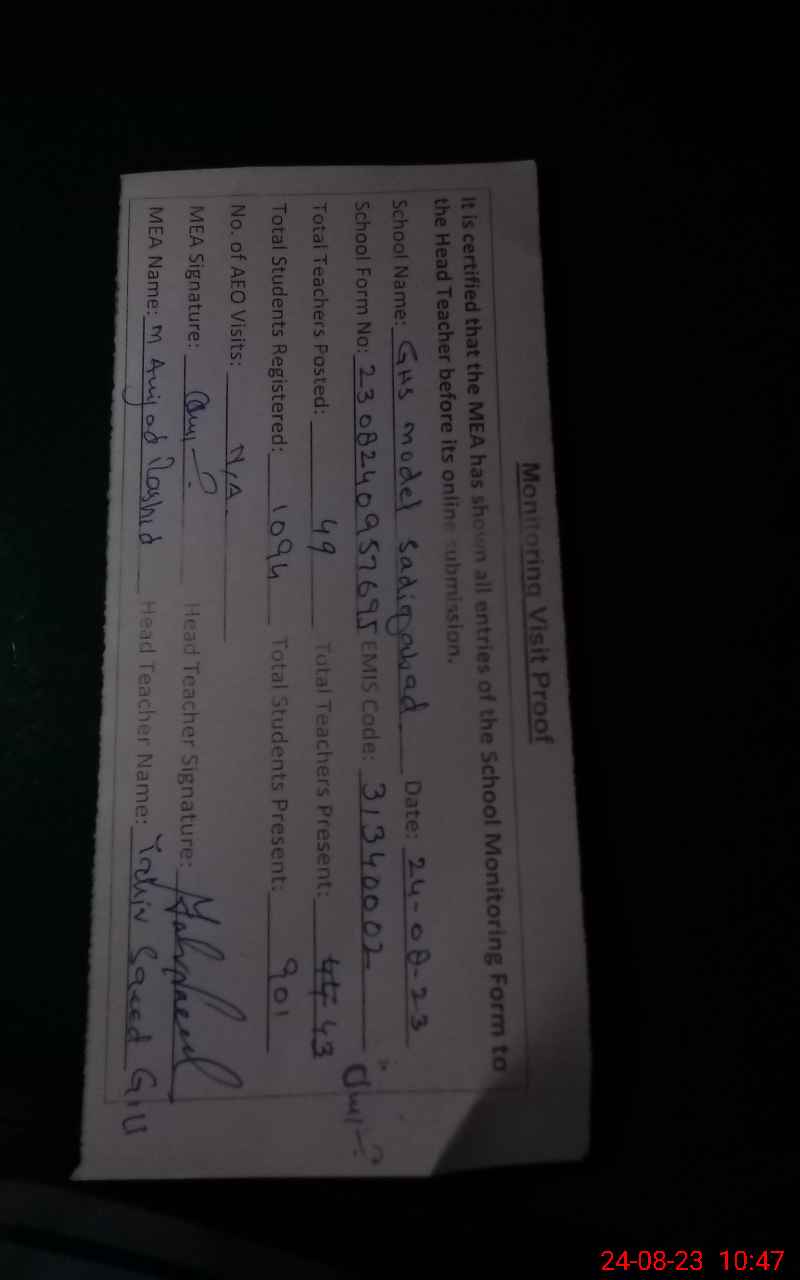 | EMIS Code: 31340002 | Name of School: GHS MODEL | |||