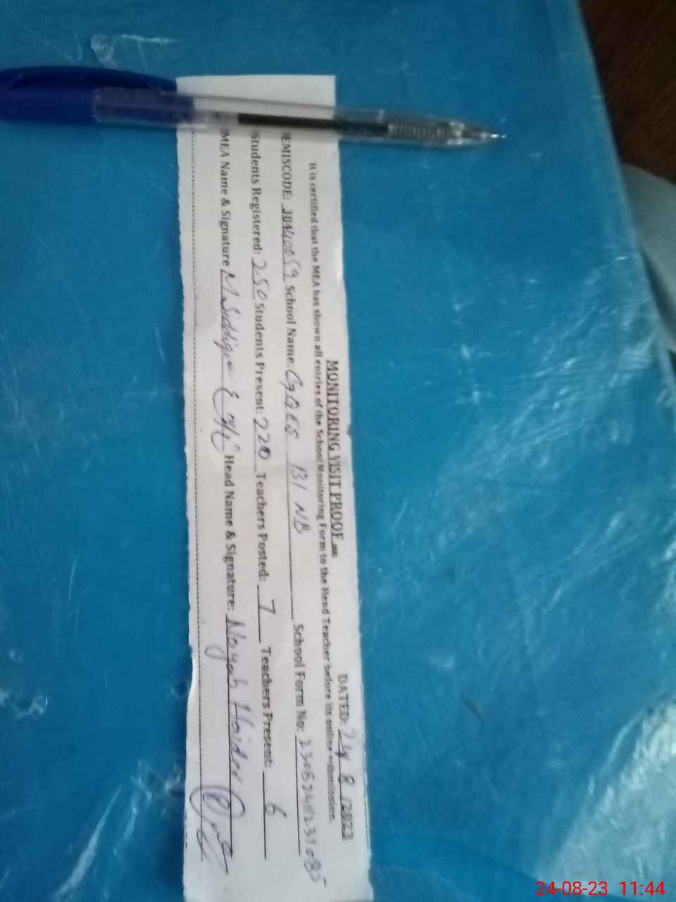 | Certified that this School was Inspected by the Undersigned MEA/DMO Today and the Information Stated Above is as Per Record. | |||||