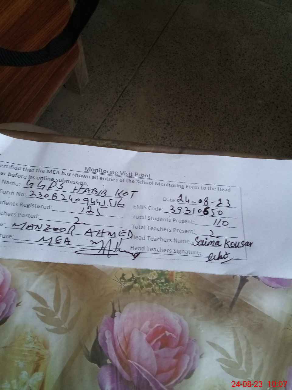 | EMIS Code: 39310650 | Name of School: GGPS HABIB KOT | |||
