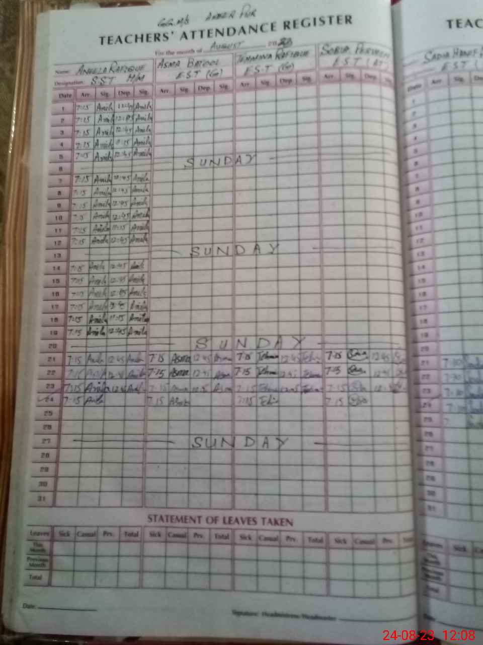 | Leave | Duty | Absent | Maternity | Medical | Ex- Pak |