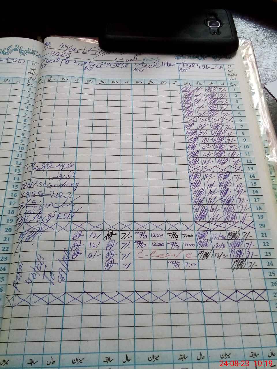 | CNIC | Full Name | Designation | R/C | Absence during last cal. month |