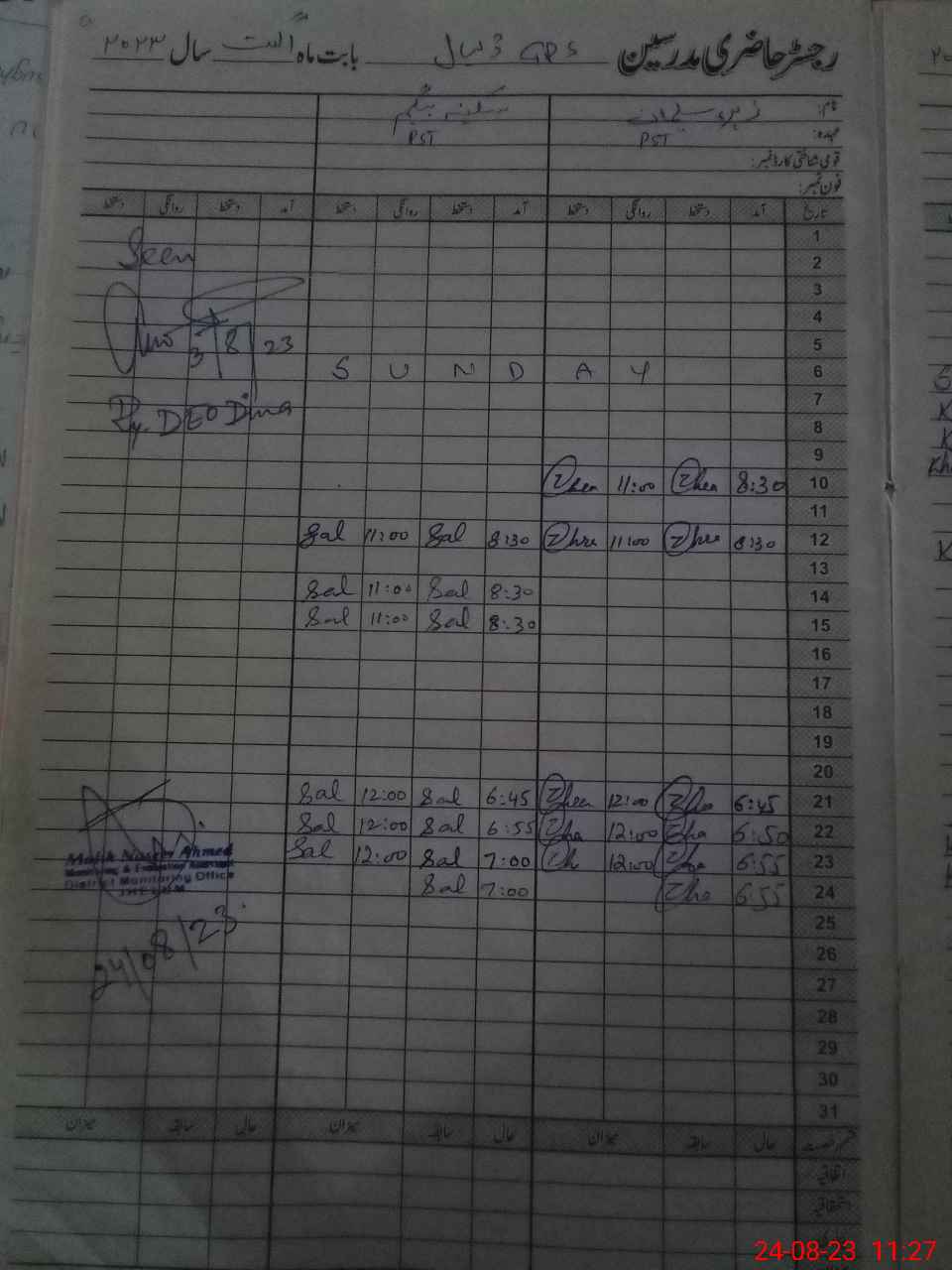 | CNIC | Full Name | Designation | R/C | Absence During Last Calender Month |