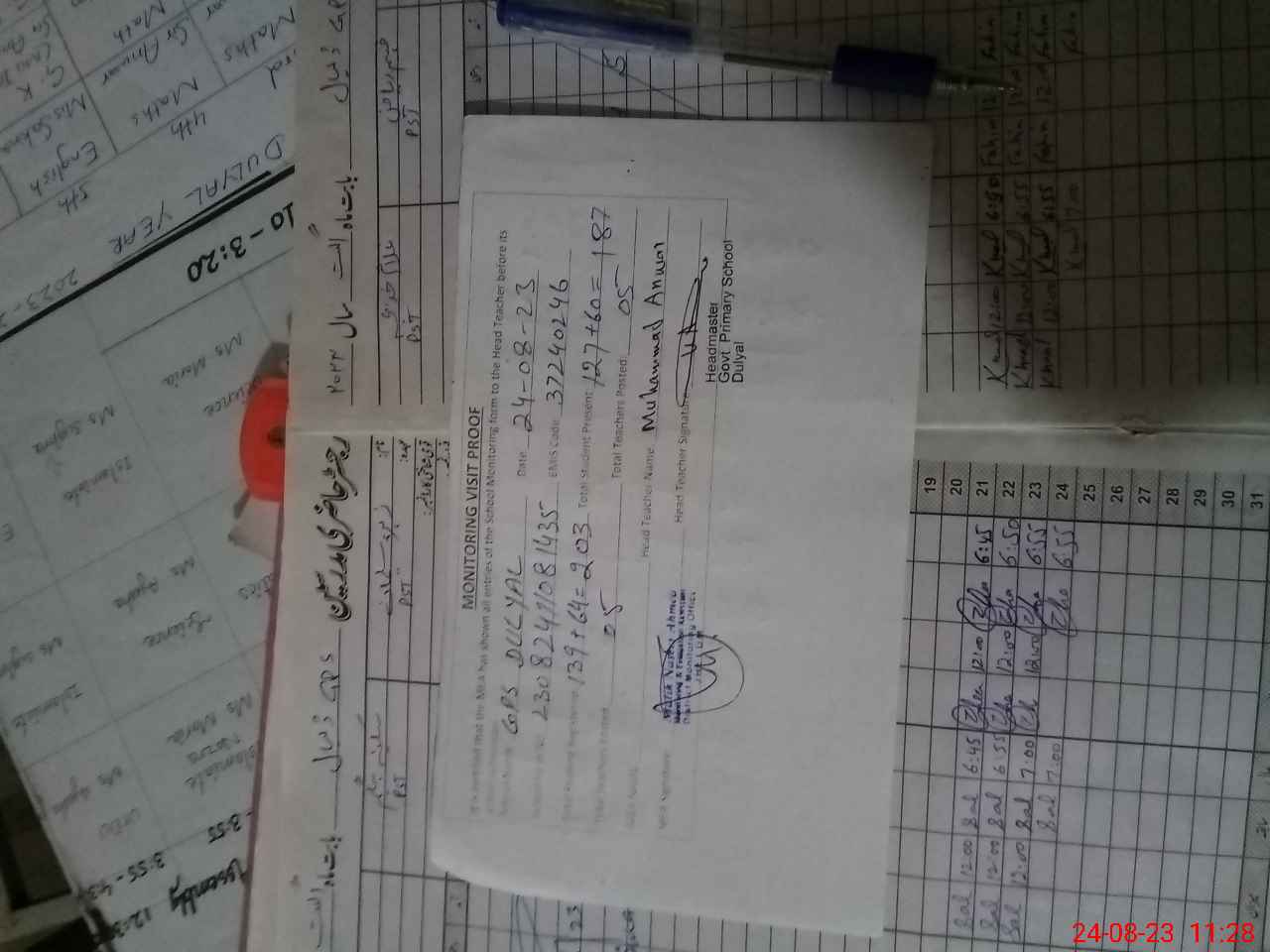 | Attendance Register | Head Teacher | MEA with School | Visit Proof |
