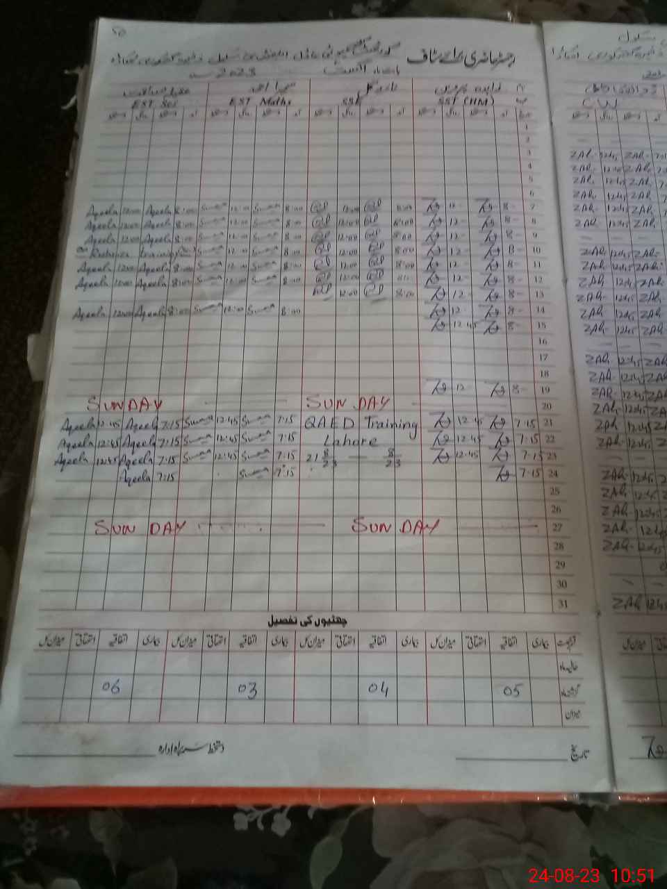 | Leave | Duty | Absent | Maternity | Medical | Ex- Pak |
