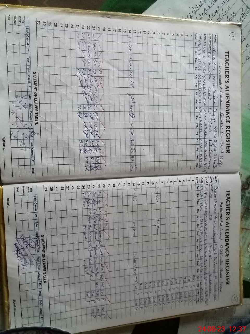 | CNIC | Full Name | Designation | R/C | Absence During Last Calender Month |