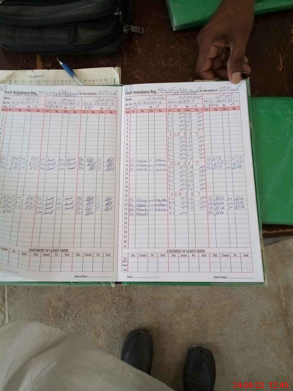 | CNIC | Full Name | Designation | R/C | Absence During Last Calender Month |