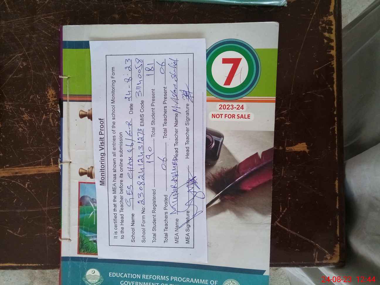 | Attendance Register | Head Teacher | MEA with School | Visit Proof |