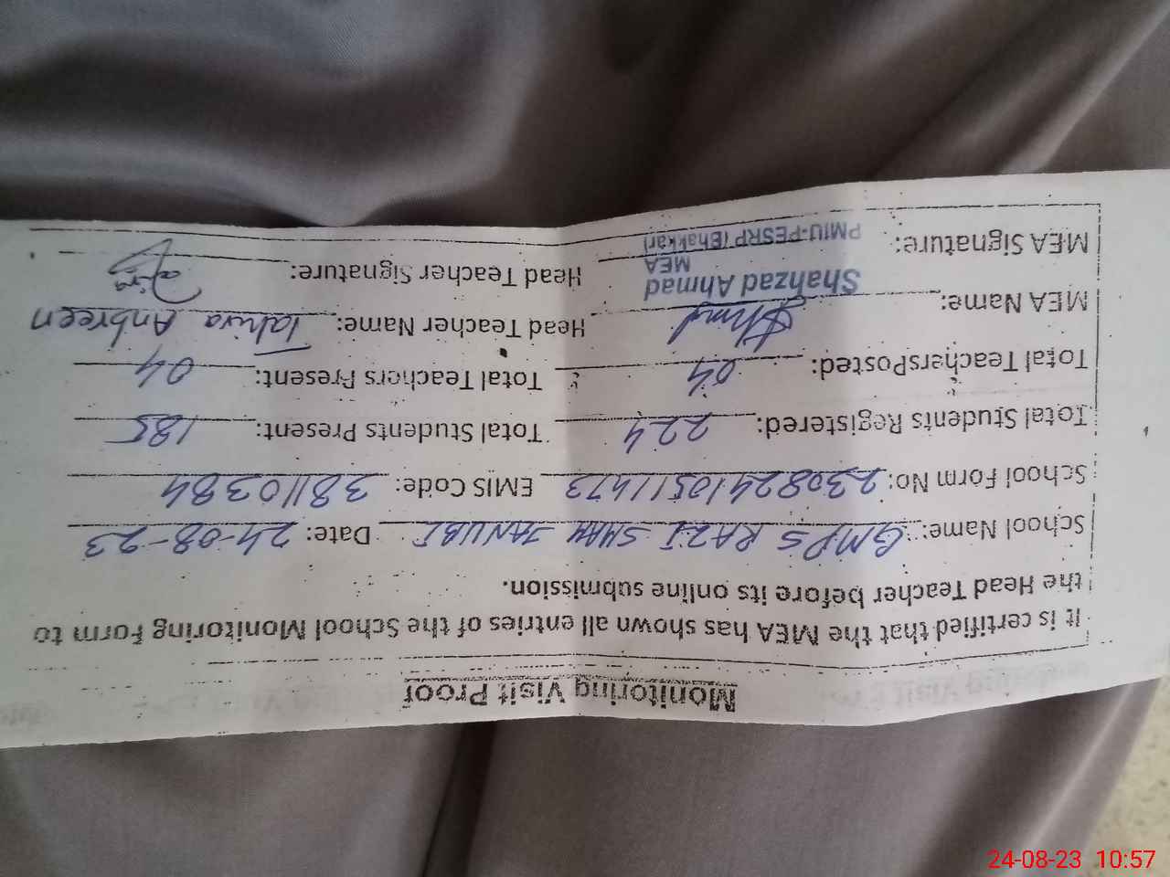 | EMIS Code: 38110384 | Name of School: GMPS RAZI SHAH JANUBI PO NOTAK | |||