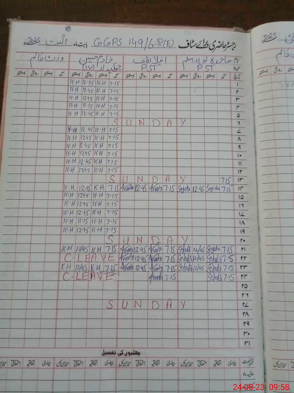 | CNIC | Full Name | Designation | R/C | Absence During Last Calender Month |