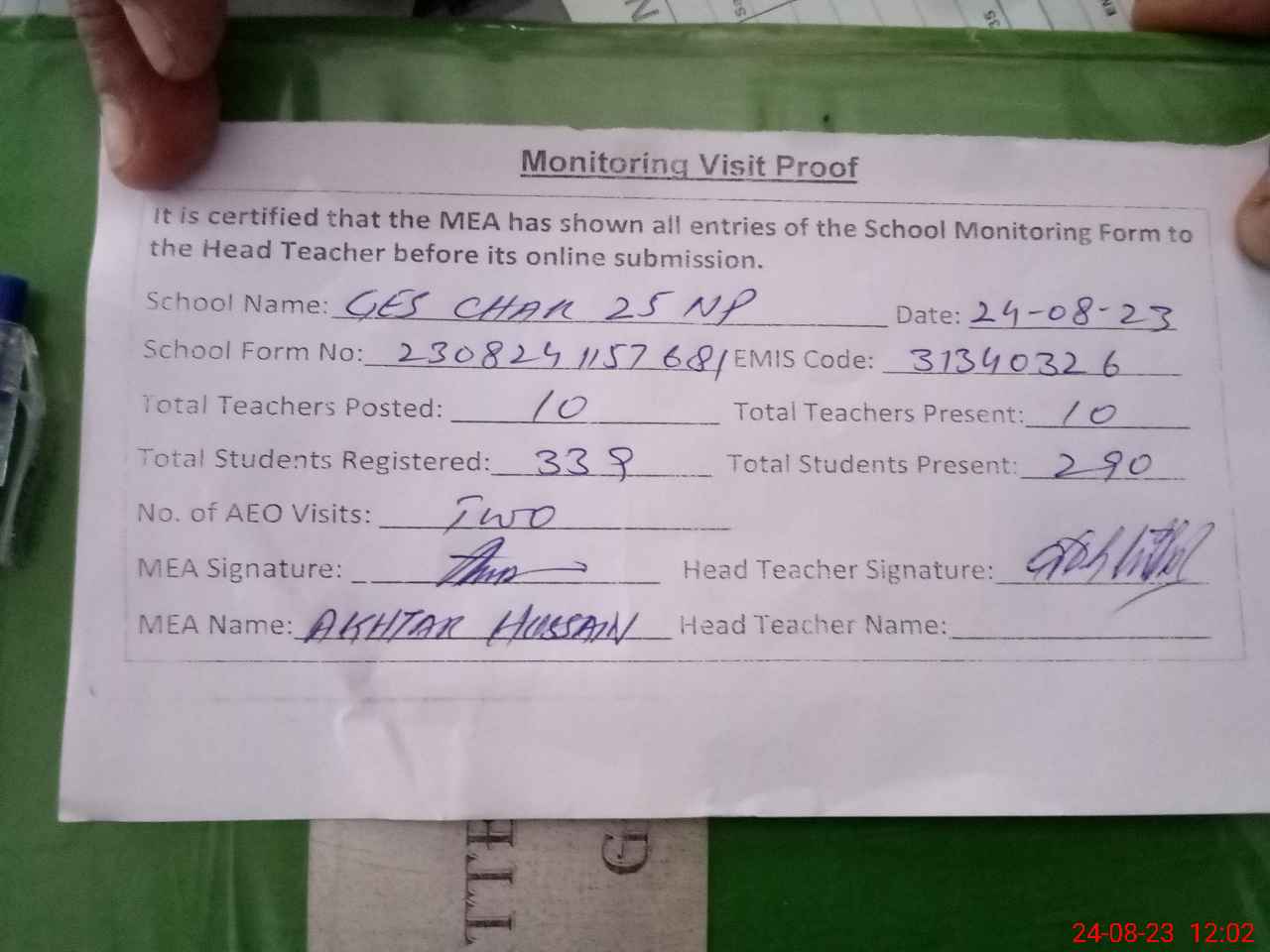 | EMIS Code: 31340326 | Name of School: GES CHAK NO 25/NP | |||
