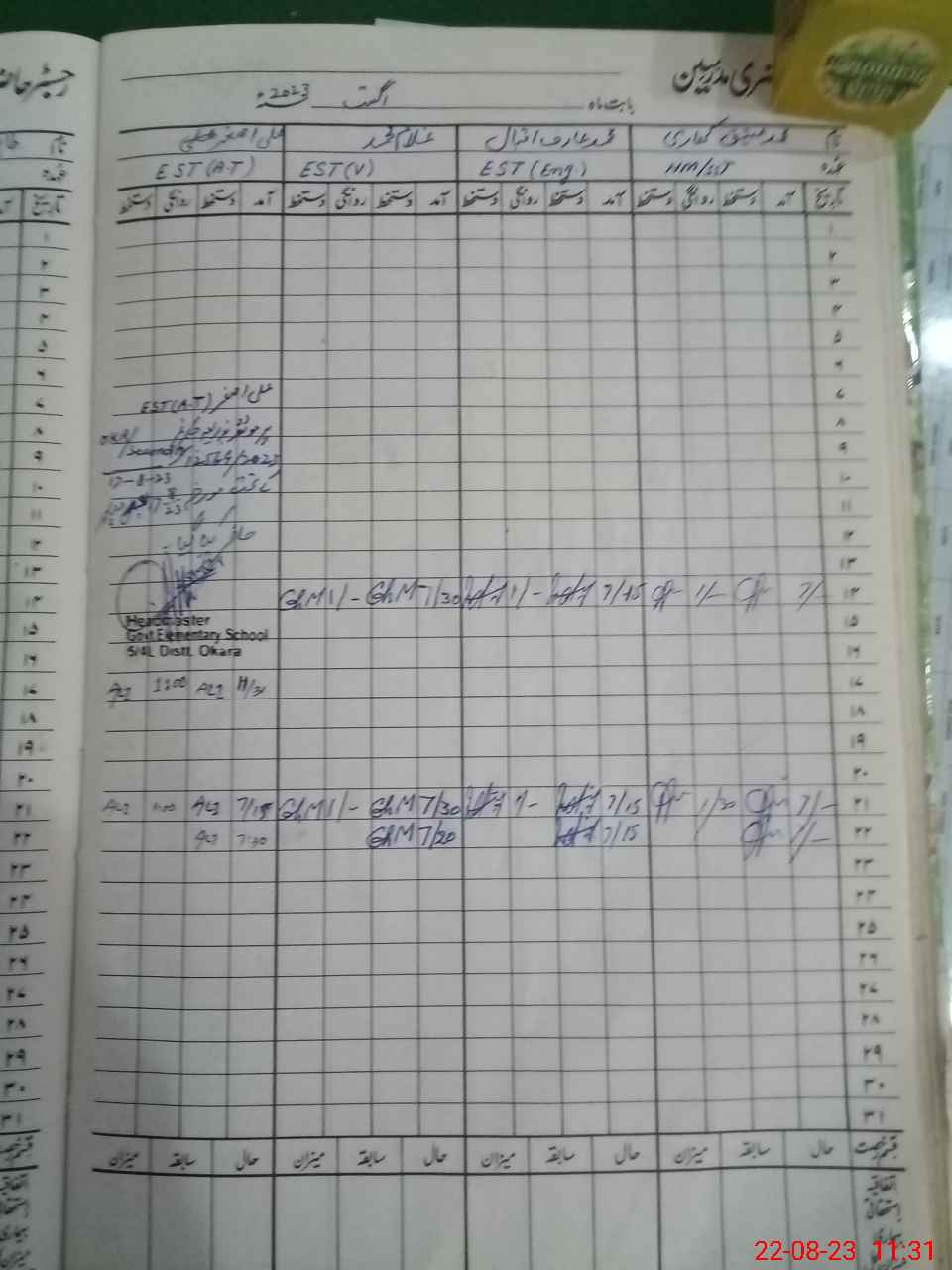 | Name: Ta**** Hu**** Designation: (School Headmaster's/Headmistress's) E.S.T.(Gen) Phone/Cell Number: 03**** |